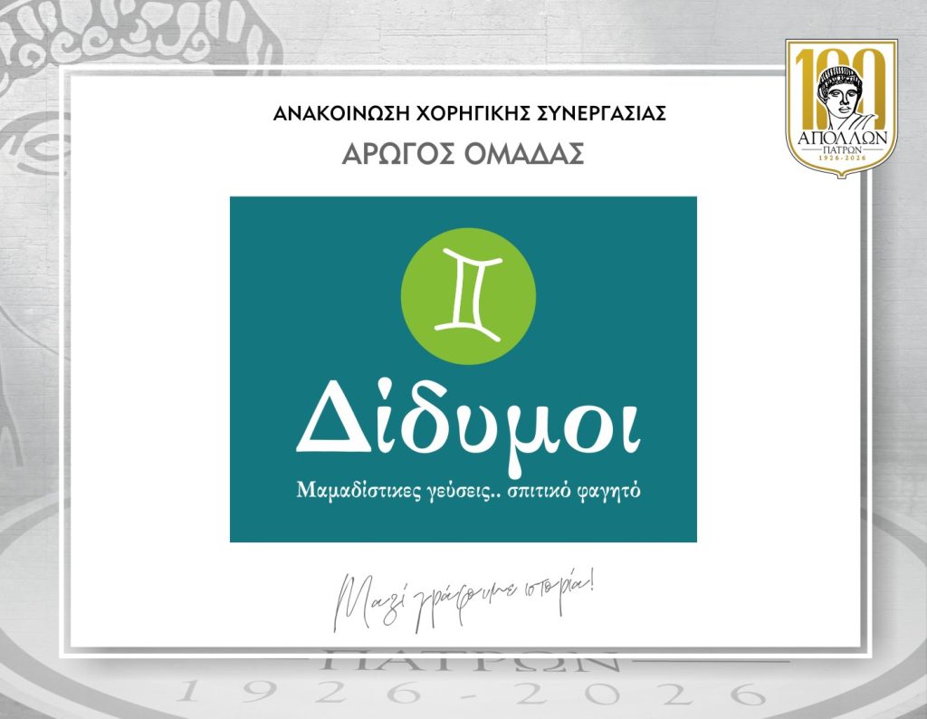 Ο Α.Σ. Απόλλων Πατρών καλωσορίζει στην οικογένειά του το εστιατόριο ΔΙΔΥΜΟΙ, έναν πολύτιμο συνεργάτη με 42 χρόνια εμπειρίας και πορεία από το 1979. Οι ΔΙΔΥΜΟΙ προσφέρουν 39 διαφορετικά πιάτα καθημερινά σχεδόν όλο τον χρόνο, με γνώμονα την πλήρη ικανοποίηση των πελατών – αξίες που ταυτίζονται με το πνεύμα και τη φιλοσοφία του συλλόγου μας. […]