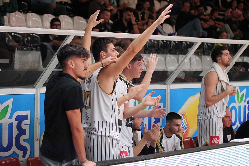 Οι «μελανόλευκοι» μπήκαν μουδιασμένα στο ξεκίνημα του αγώνα και βρέθηκαν πίσω στο σκορ με 17-22 στο πρώτο δεκάλεπτο. Ωστόσο, στη συνέχεια παρουσίασαν σημαντικά βελτιωμένη εικόνα, κυριαρχώντας στο δεύτερο δεκάλεπτο με επιμέρους σκορ 24-11 και κλείνοντας το ημίχρονο 41-33 υπέρ τους.